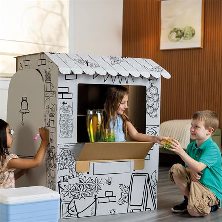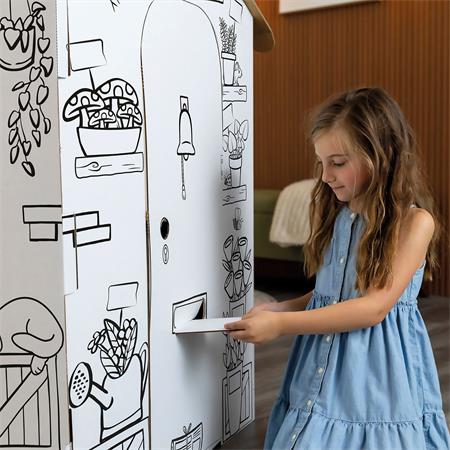 Színezzetek! Játsszatok és alkossatok együtt!Élesszük fel képzeletünket ebben a csodás kreatív világban.Az XL méretű játszóház ösztönzi a célirányos szerepjátékot, a nyelvi fejlődést és a mesemondást, miközben a gyerekek kifestik, díszítik és személyre szabják a saját terüket. A színezés elősegíti a finommotorikus koordinációt és a koncentrációt, míg az együttműködésen alapuló játék fejleszti az osztozkodás, a kommunikáció és a szociális-érzelmi készségeket.-XL méretű színezhető piaci stand-méret: 81,6x93x106,6 cm-vidám jelenetek: virágok, állatok és áruk mintái-színezhető és egyedileg dekorálható felületek-ösztönzi a kreativitást és a történetmesélést-fejleszti a finommotorikát és a koncentrációt-támogatja a kommunikációs és szociális készségeket-együttműködésre és közös játékra ösztönöz-interaktív ablakok és ajtók-fejleszti a kreativitást és a szerepjátékot-erős, tartós kartonból készült-FSC® tanúsítvánnyal rendelkező alapanyag-szerszám nélkül, könnyen összeállítható-vízbázisú festékkel nyomtatva-CE és UKCA szabványoknak megfelelő-ideális otthoni vagy óvodai, iskolai használatraGyártó/első EU forgalmazó elérhetősége:Fellowes Holdings B.V.Gesworehoekseweg 3a 5047 TM Tilburg, NeatherlandsCS-benelux@fellowes.comwww.fellowes.com