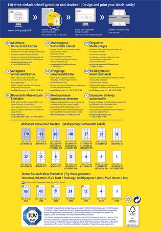 Etikett, univerzális, eltávolítható, 96x63,5 mm, AVERY ZWECKFORM, 240 etikett/csomag