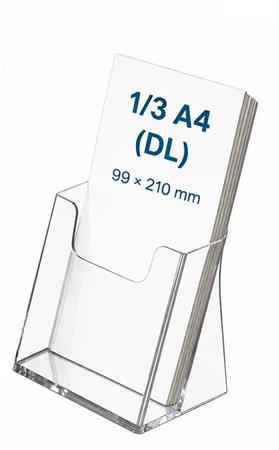 Az 1/3 A4 (DL) méretű asztali szórólaptartó elegáns és praktikus megoldás prospektusok, menük vagy termékleírások kihelyezésére.-asztali kivitel-1/3 A4 (DL) méretű brossúrákhoz-1 rekeszes kialakítás-alapanyaga átlátszó akril-belső méret: 104 × 201 × 32 mm-bankokba, szállodákba és kávézókba ajánlott-teljesen átlátszó kivitel-logózással vagy matricázással egyedivé tehető-helytakarékos kialakítás-esztétikus megjelenésGyártó/első EU forgalmazó elérhetősége: R+C Kereskedelmi és Szolgáltató Zrt.1558 Budapest, Pf. 161. Magyarországcolop@colop.huwww.colopshop.hu