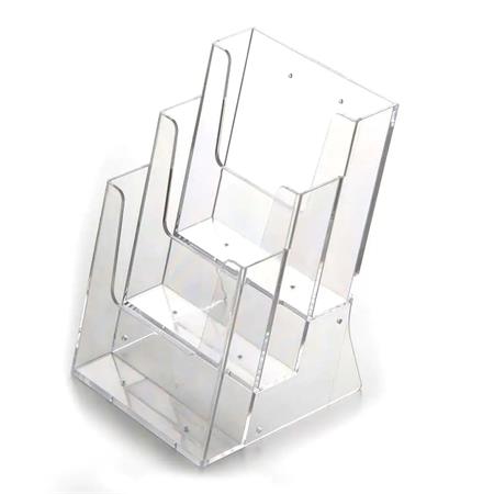 A 3 rekeszes asztali és fali szórólaptartó praktikus és sokoldalú megoldás többféle kiadvány egyidejű, rendezett megjelenítésére.-asztalra helyezhető és falra is szerelhető kivitel-A5 méretű brosúrákhoz-3 rekeszes kialakítás-belső méret: 152 × 141 × 34 mm-postákra, bankokba, üzletekbe és orvosi várókba ajánlott-akár 3 különböző kiadvány egyidejű megjelenítésére alkalmas-teljesen átlátszó kivitel-logózással vagy matricázással egyedivé tehető-helytakarékos kialakításGyártó/első EU forgalmazó elérhetősége: R+C Kereskedelmi és Szolgáltató Zrt.1558 Budapest, Pf. 161. Magyarországcolop@colop.huwww.colopshop.hu